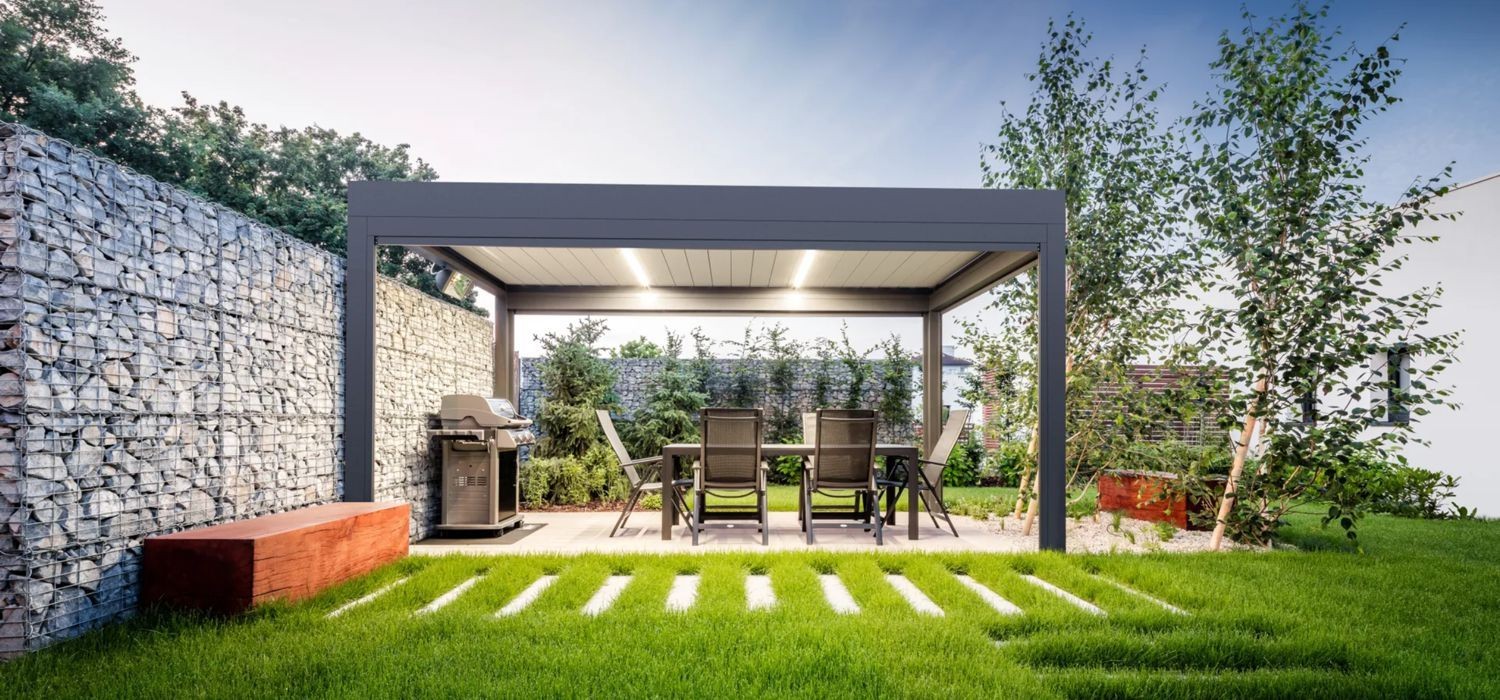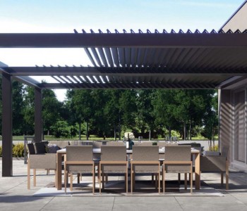 Wykonana w całości z aluminium, pergola bioklimatyczna zapewnia pełną ochronę przed słońcem i deszczem. Właściwy klimat pod pergolą jest rezultatem naturalnej cyrkulacji powietrza przez uchylone lamele.
